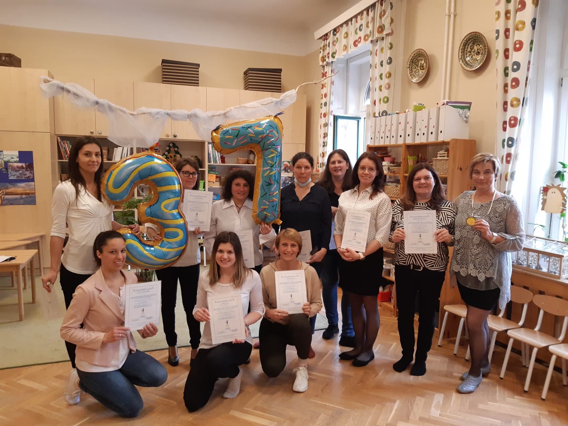 „Az elsajátított ismeretek miként segítik majd a munkáját a 3-7 éves korosztály iskolára való felkészítésében? Óvodánkban az intézmény igazgatója vagyok, elsősorban az óvodapedagógusoknak tudok segíteni játék ötletekkel, módszertani ismeretekkel. Heti rendszerességgel tartunk szakmai megbeszéléseket, ahol helye van az ismeret-átadásnak, a továbbképzésen tapasztaltak megbeszélésének. Szakmai napunkon helyet fogunk biztosítani pedagógusainknak, hogy a „gondolkodtató testnevelés” szélesebb körben ismert legyen. Mely feladatok, illetve gyakorlatok hagytak a legmélyebb nyomot a tanfolyam során Önben? A színes eszköz repertoár. A rendelkezésemre álló lehetőségeket figyelembe véve mindig igyekszem biztosítani a legújabb eszközöket kollégáimnak. A tanfolyamon megismert eszközök közül máris újabbakkal gazdagítottuk óvodánkat: KTK padlap, sport poharak, kör alakú padlójelölő korong, csipeszek. Számomra nagyon jó volt megtapasztalni azt is, hogy egyszerű tárgyakkal milyen sokszínűen lehet fejleszteni a gyermekeket, nem kell feltétlenül drága eszközöket vásárolni, az újrahasznosításba, eszközkészítésbe is bevonhatjuk a gyermekeket is. Mi a véleménye arról, hogy a megszerzett ismereteket és gyakorlatokat mikor tudja beépíteni a fejlesztő munkájába? Az önképzést, a folyamatos megújulást fontosnak tartom és magam is igyekszem példát mutatni óvodapedagógus kollégáimnak. Az óvodából négyen is részt vettünk a képzésen így át tudjuk adni a megszerzett ismereteket. Összességében mi az, amit a leghasznosabbnak tart a tanfolyamon szerzett ismeretek és gyakorlatok közül, és miért? Új eszközöket ismertem meg, a színes felhasználási módokról is tapasztalatot szereztem. Átismételtem, rendszereztem ismereteimet a tanfolyam segítségével. A különleges bánásmódú gyermekek részére segítséget tudok nyújtani, ötletekkel, megvalósítási módokkal”. Sz. N. Zsuzsa intézményvezető