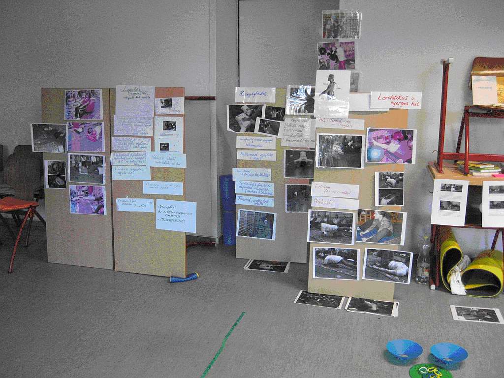 „Nagy örömömre szolgált, hogy sok esetben pontosíthattam tudásomat (például: Mozgáskotta: az állatokhoz tartozó kartartások - eddig én pontatlanul terpeszt kértem a Macinál, vagy hajlított térdet és oldalállást a mókusnál, mozgáskotta babzsákjainak a használata; hogy kell segíteni az ellentétes lábmozgást a kúszásnál – én eddig a karral nyomtam a gyerekek lábát) vagy felfrissíthettem azt újabb gyakorlati példával bővítve a már meglévő óvónői eszköztáramat (sportpoharak, homloklebeny gyakorlatok, mozgáspihenő) és sok új gyakorlati ötlettel is gazdagodhattam mind eszközök, mind feladattípusok tekintetében. (fitnesslabda, feladatlapok a mozgássorokban, finommotoros fejlesztései lehetőségek - békaugratás, apró tárgyak szedegetése, kislabdás játékok - labdagyűjtögetés színek szerint, célba dobás mozgó célpontra, csipeszes játékok – testrészre csíptetés a kép alapján és a csipeszadogatós színek alapján). Mindezek a gyakorlatok szinte azonnal beépíthetők a saját munkám során, csak a témához kell igazítanom. Több mindent már ki is próbáltam, amire nagy segítségemre volt a képzésen megkapott kész feladatlapok”.